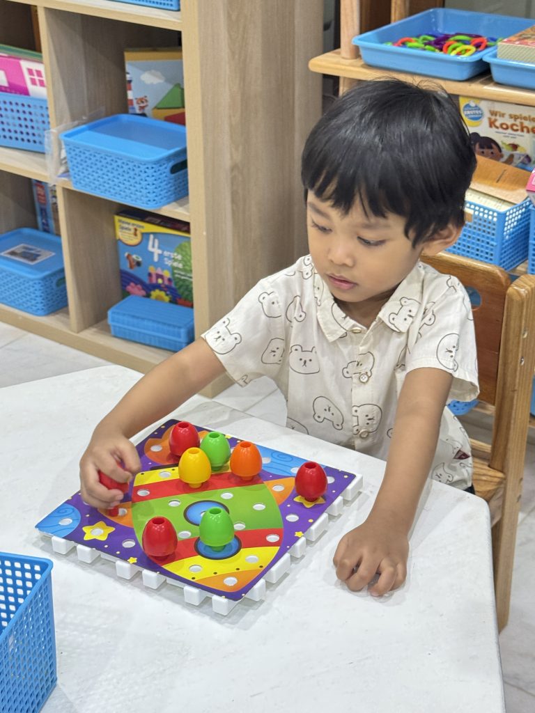 Di CEC, anak seperti memasuki mini world of toys— penuh puzzle, manipulatives, strategi games, sensory tools, hingga permainan tangan yang disusun sesuai usia. Setiap mainan bukan hanya untuk bersenang-senang, tapi juga dirancang untuk: